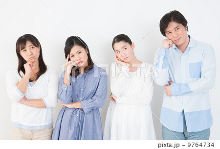 みんな(ここポイントです)で、大笑いしている素材、泣いている素材、悩んでいる素材。