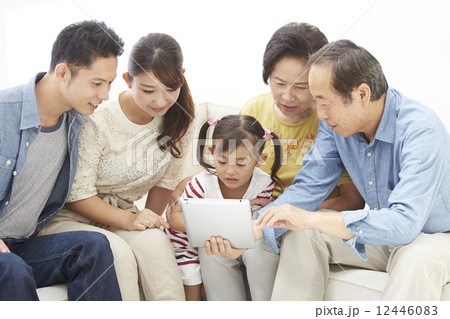 三世代コンテンツや、子供が二人の親子素材など、人数が多い素材が人気があります。