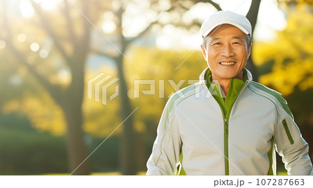 元気なシニア、スポーツウェアを着た日本人男性 AI生成画像