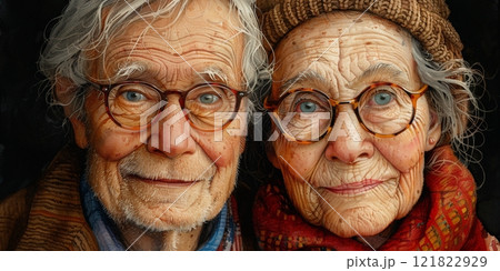 Watercolor Illustration of an Elderly Couple in an Autumn Forest