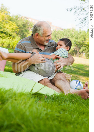 Grandfather playing with grandson in park