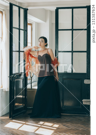 ドレスを着てメイクアップした女性