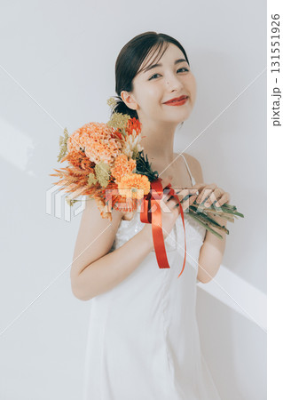 花束を持つ女性