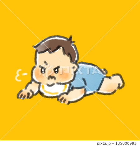 ずり這いしている赤ちゃんの手描きイラスト