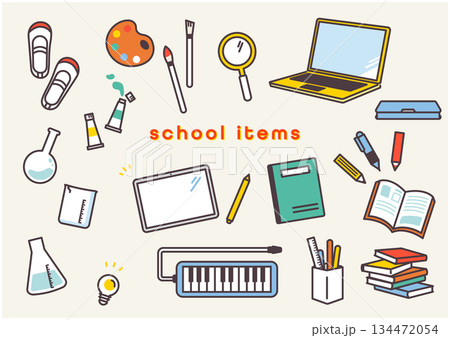 あしらいに使える小学校の小物 アイコンイラスト素材