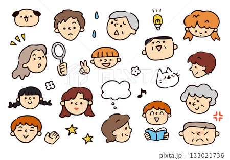 子供から高齢者まで様々な世代の人たちの上半身イラストセット