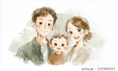 白背景、白バック、日本の家族のイメージイラスト