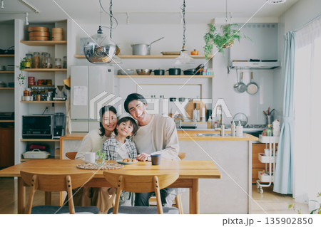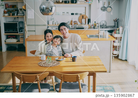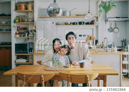 ダイニングでくつろぐ家族