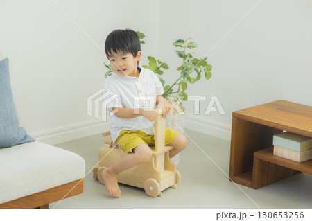 ハイハイする赤ちゃん と遊ぶ4歳のお兄ちゃん