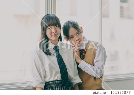 制服姿で微笑む女子学生のポートレート