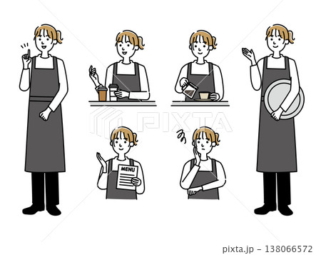 カフェの店員 メニュー表を持つ飲食店の店員のイラスト