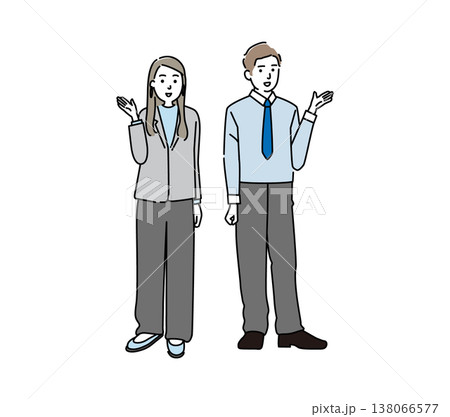 両手を前で組んでかしこまるカジュアルな服装の男性のイラスト素材