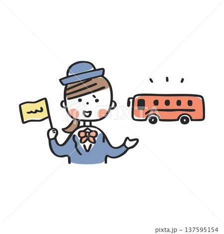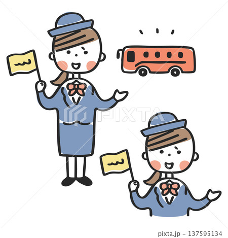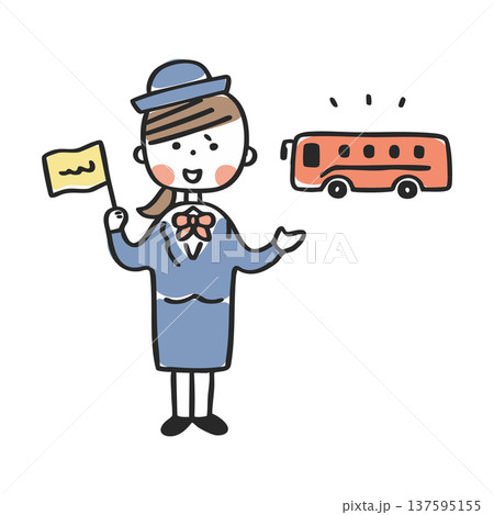 バスガイドさんの手描きベクターイラスト