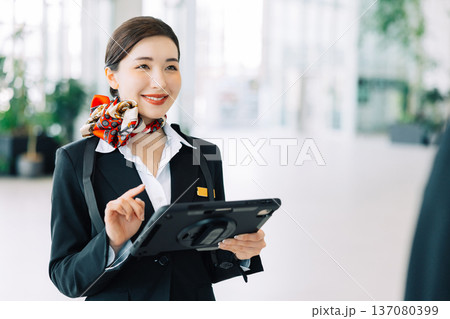タブレットを持つ空港のグランドスタッフ 「撮影協力:神戸空港(UKB)」