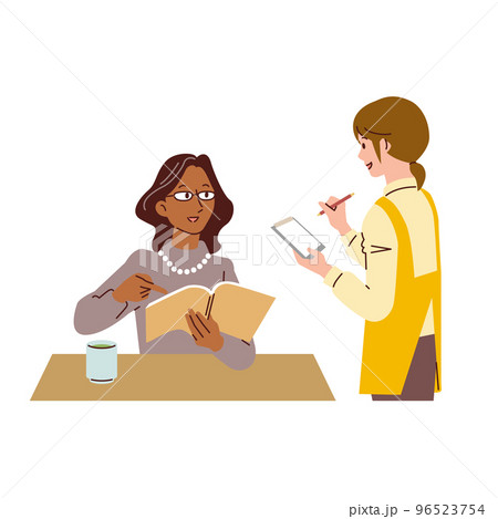 インバウンドで外国人の注文の対応をする店員さん 線あり