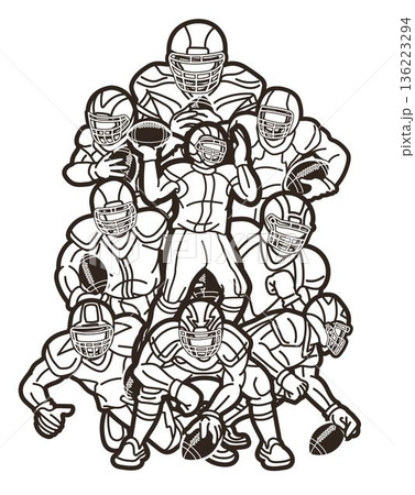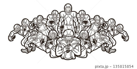 Outline Group of American Football Sport Players Mix Action Cartoon Graphic Vector