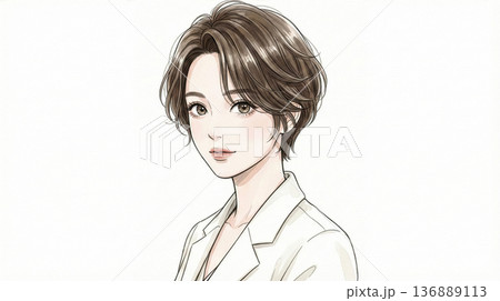 健康的で美しいショートボブの若い女性 透明感のあるアイキャッチポートレートイラスト