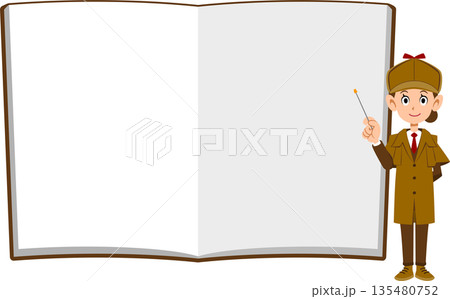 ノートの前で案内する女性の探偵