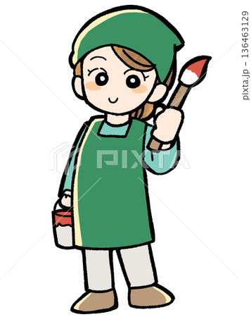 ペンキと筆を持つ塗装屋さん