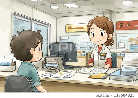 働く女性シリーズ:受付カウンターに立つ女性スタッフ|小売店のやさしい接客イメージ