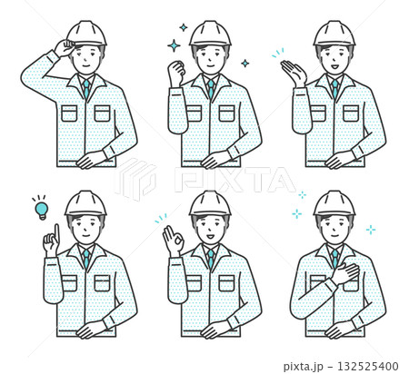 様々な表情とポーズの作業員男性の上半身イラストセット