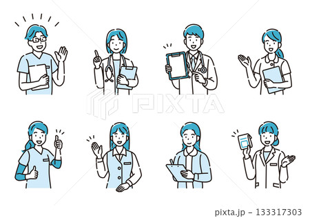 医療従事者のいろいろなポーズと表情のセット