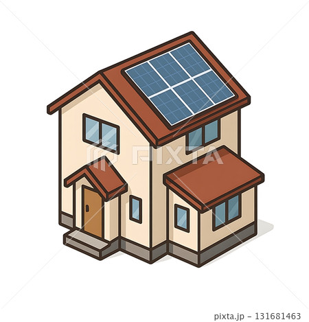 太陽光発電(ソーラーパネル)を設置した一軒家の風景イラスト