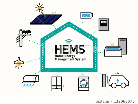 HEMS スマートハウス|電力見える化の住宅のイラスト、ベクター