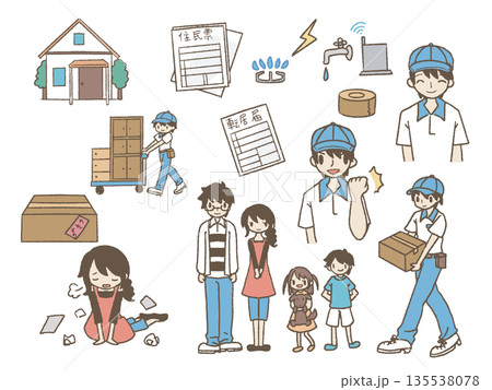 引っ越しのイラストセット3カラー