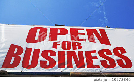Low angle view of Open for Business sign