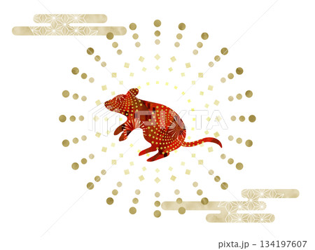 和風の鼠と幾何学模様