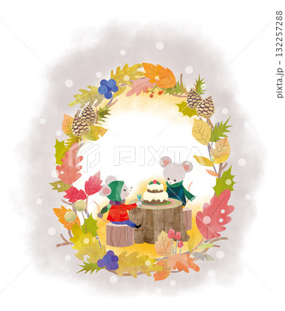 かわいい動物達のパーティー_手を取り合うネズミとリス