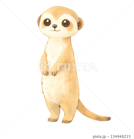 立つミーアキャット かわいい・ゆるい動物の手描き水彩イラスト素材