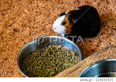 餌を食べるモルモット