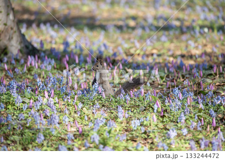 花畑の可愛いエゾリス