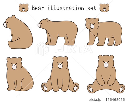 かわいいくまのベクターイラストセット。熊、動物、線画