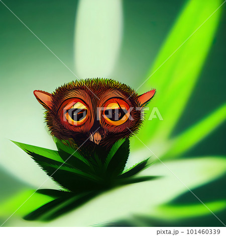 Cartoon tarsier monkey. Tarsier and cannabis. AI-generated