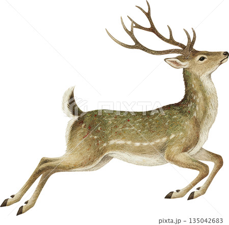 水彩で描いたオスの鹿【手描き】イラスト 白バック 透過背景 コピースペースあり