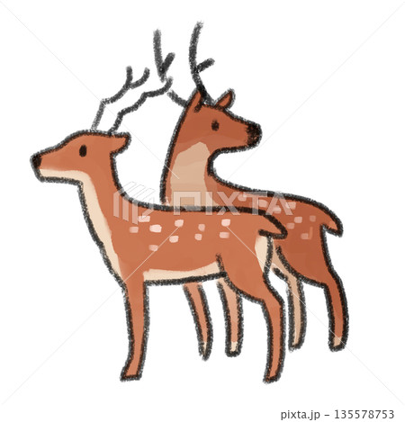ふんわり手描き風のかわいい鹿イラスト 透過PNG素材