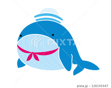 夏っぽい恰好をしたクジラのイラスト、カラー
