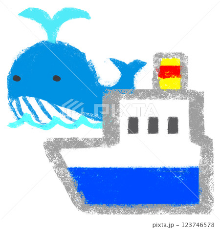 シンプルイラスト クレヨンタッチ 鯨クルージングツアー