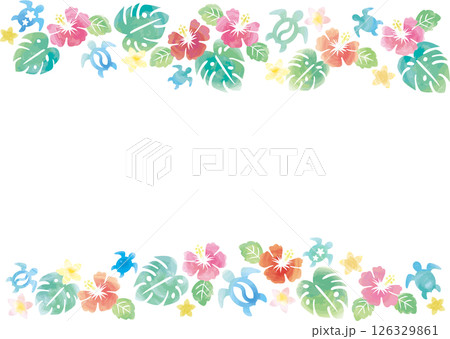 トロピカル素材 常夏の植物・ウミガメのマークなど