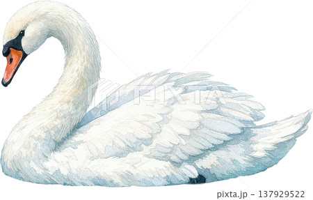 優雅な白鳥の水彩画イラスト、白い背景に佇む美しい水鳥