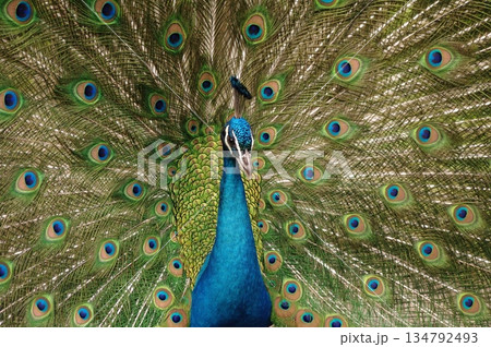 インドの国鳥であるインドクジャク精悍な顔立ち