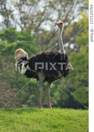 木々を背にしたダチョウの赤唇【ダチョウ目】