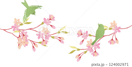 バナー フレーム 春 花 さくら 桜 木 うぐいす 鶯 背景 和柄 コピースペース イラスト素材