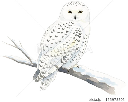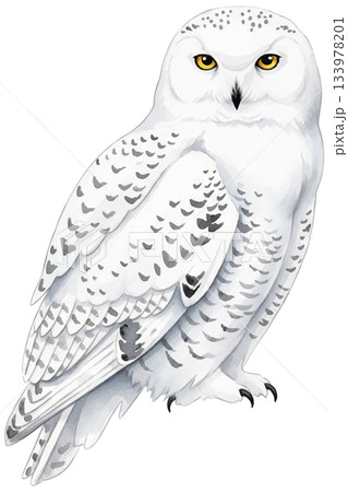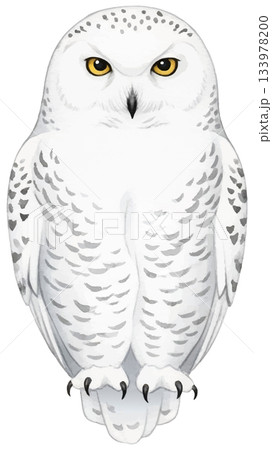 北欧風イラスト・シロフクロウ(グレー背景ver.)