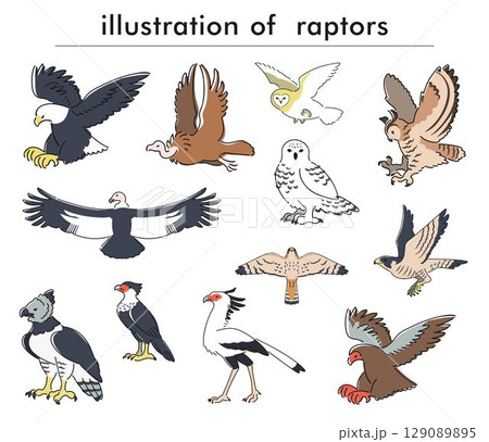 シロフクロウやカワセミやセキレイなど野鳥のイラスト素材
