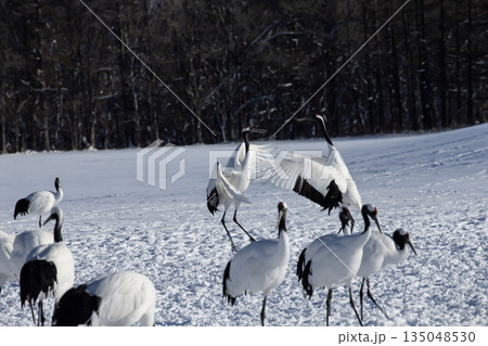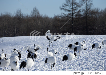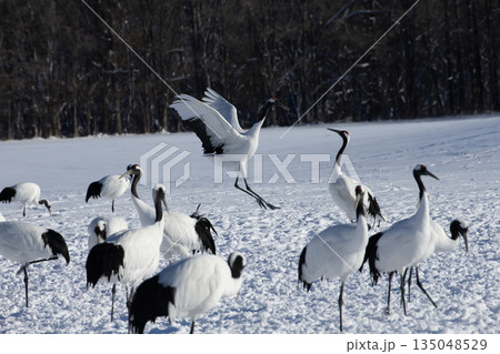 タンチョウ鶴の求愛ダンス-道東の冬景色