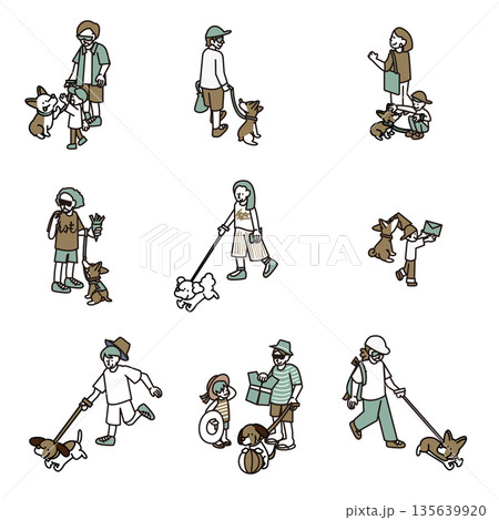 犬と歩く日常 人物バリエーションセット(家族・シニア・親子)